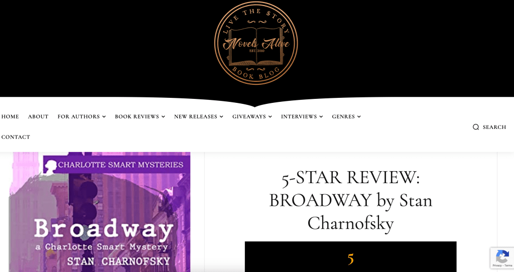THANK YOU FOR THE GREAT REVIEW! We’re so excited to see that Charlotte received a 5-star review! Thank you Lori! Wow! Share this: Click to share on X (Opens in new window) X Click to share on Facebook (Opens in new window) Facebook Like Loading... Related June 11, 2023June 11, 2023 by DPP Categories: book releaseTags: @lorivanburen, Alvira Meehan, broadway, cosy mystery, devils party press, dollycas, hawkshawpress, Lori Van Buren, Mary Higgins Clark, mysterylovescompany, novels alive, stan charnofsky Leave a comment